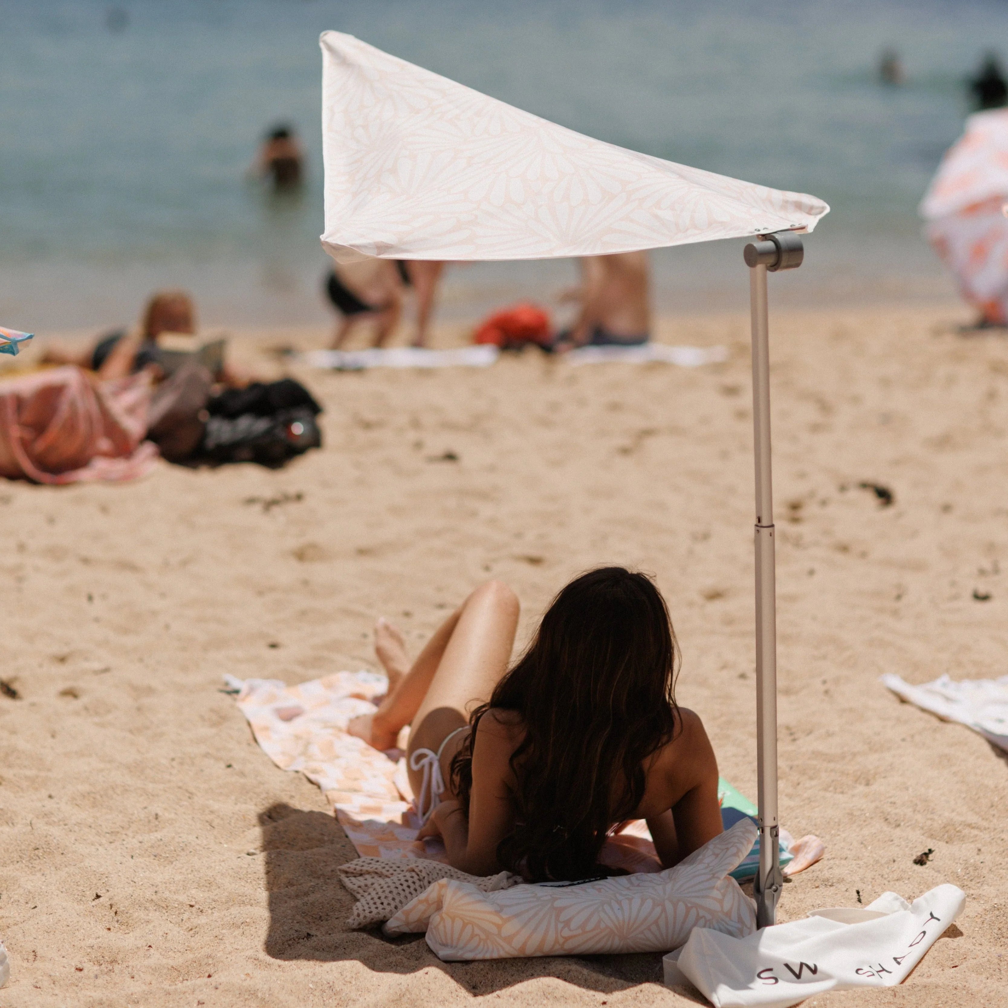 This canopy features a warm, organic pattern, blending elegance and eternal charm. The calming design brings a gentle vibe to the beach, making it perfect for those looking to add a subtle touch of style to their sun protection. The Soothe Swim Shady embodies relaxation and sophistication.